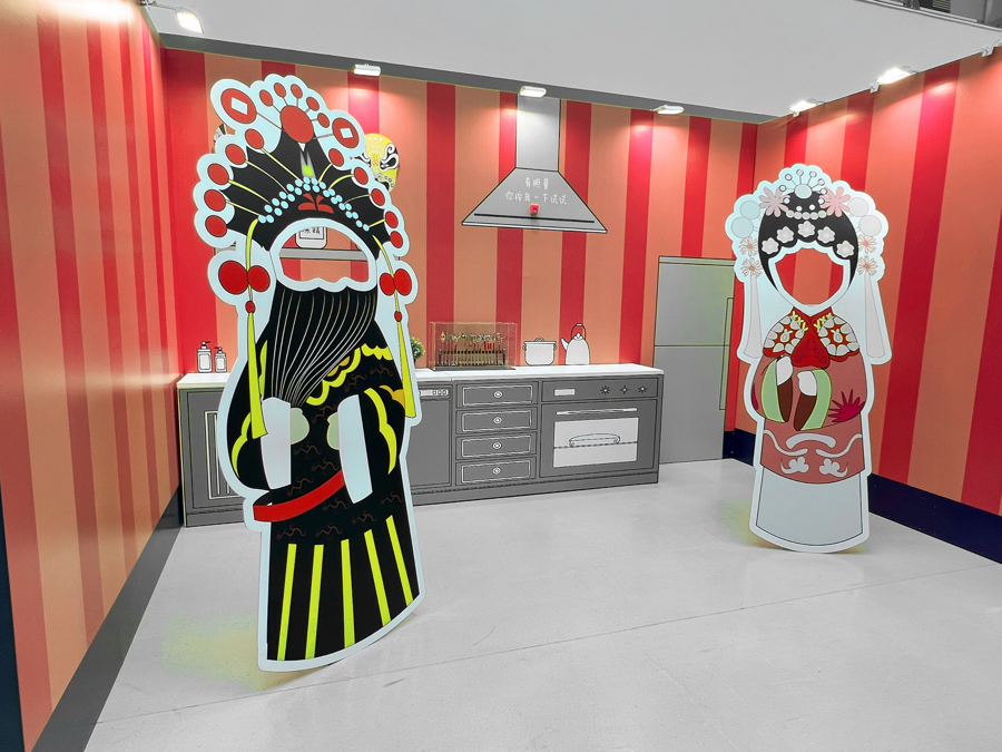观众走进这里,就像是推开家门,玄关、客厅、厨房、卧室等每一个家居场景都巧妙融入了淮剧、沪剧等戏曲元素,成了可看、可听、可共情的打卡空间,真正营造出推开家门,就是戏台的沉浸式体验,传递出“生活即戏,家是永不落幕的舞台”的全新美学理念。